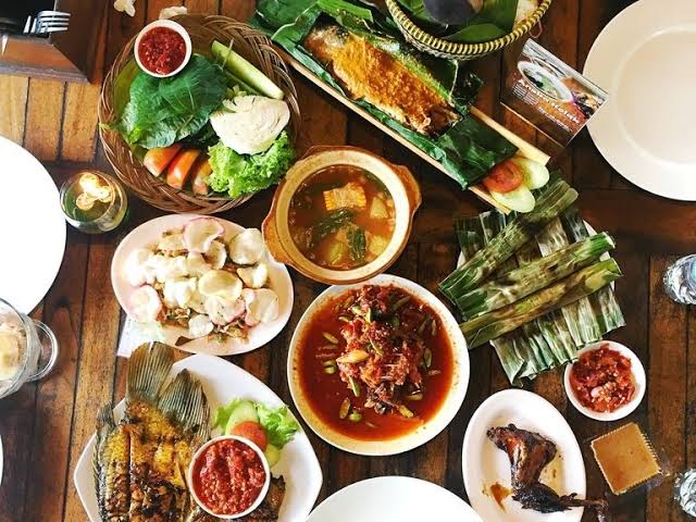 Menikmati makanan diiringi musik gamelan Bali yang terdengar sayup-sayup, sambil melihat pemandangan alam yang indah dari lembah sungai Ayung, di Kadewatan, Ubud.