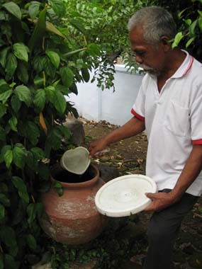 Setelah itu, taburkan garam kasar + sedikit abu dupa atau kemenyan putih (jika ada).